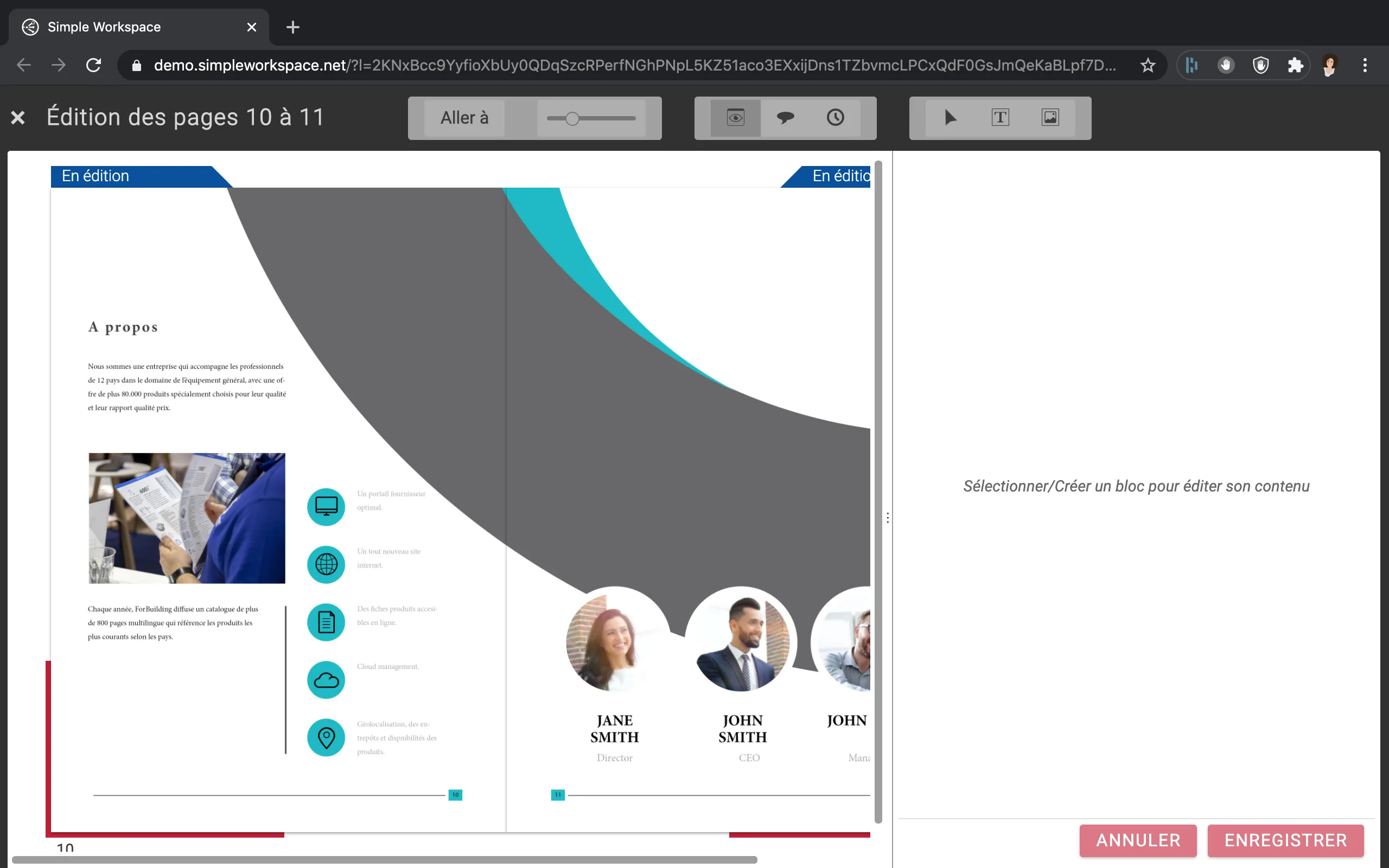 La plateforme structure ainsi les échanges pour accélérer la validation des pages. Les « rédacteurs » peuvent immédiatement réviser les pages maquettées mises à leur disposition par le studio. Les outils permettent de :