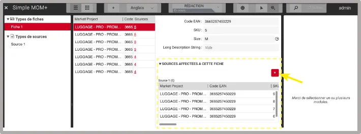 On peut donc désormais travailler directement dans les sources (affectées ou non) sans être dans une fiche.