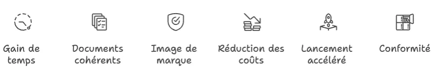 - Gain de temps de 80 à 90 % sur la production de documents