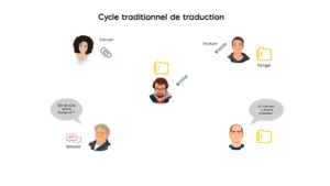 Agencies resort to translators to ensure high quality translations. However, the production is often impacted by multiple exchanges between the various participants, a very time-consuming process with no added value.