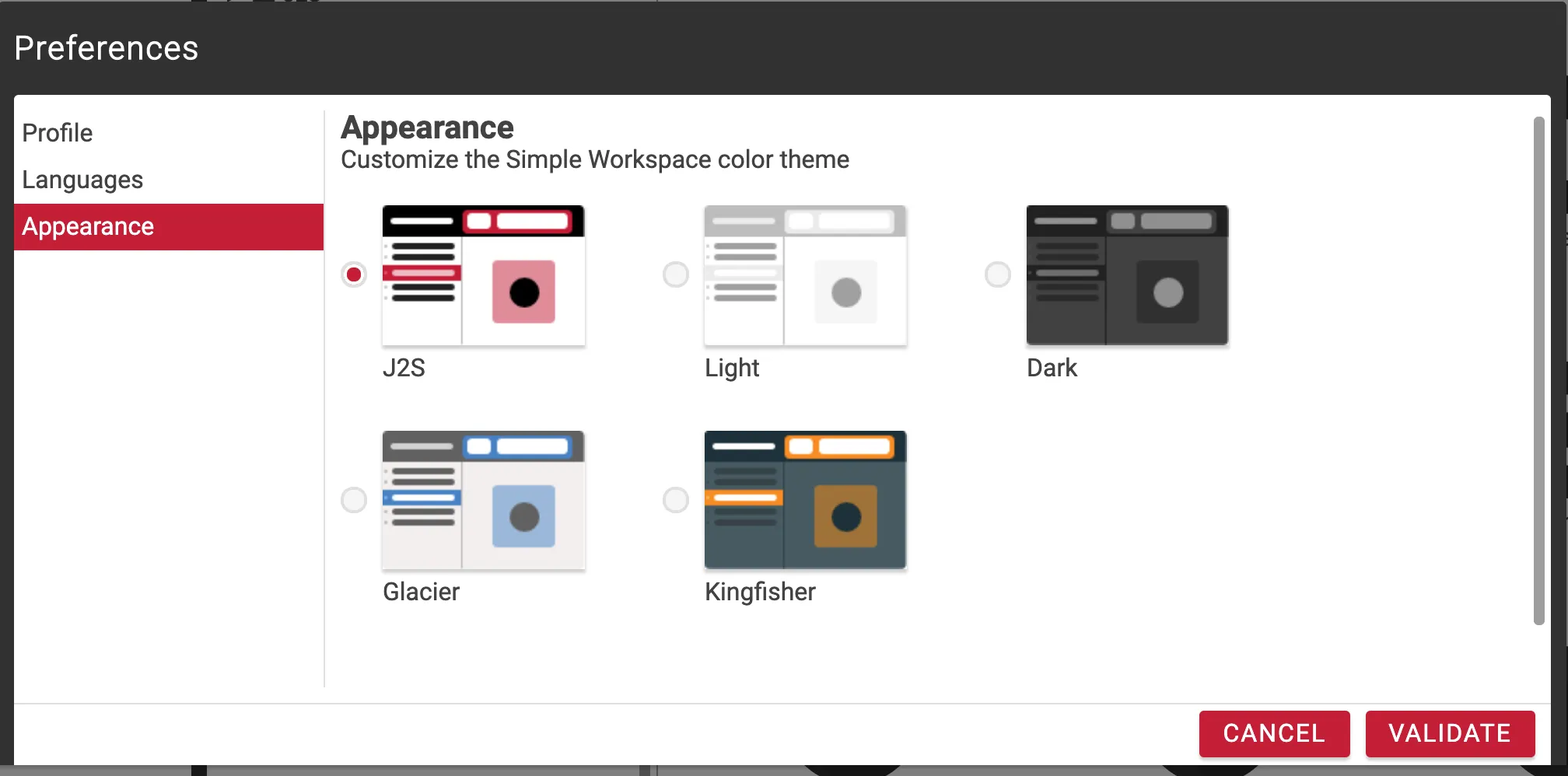 - Depending on the rights you are assigned, you can choose between several skins and customize the colors of the display to have the environment that suits him/her;