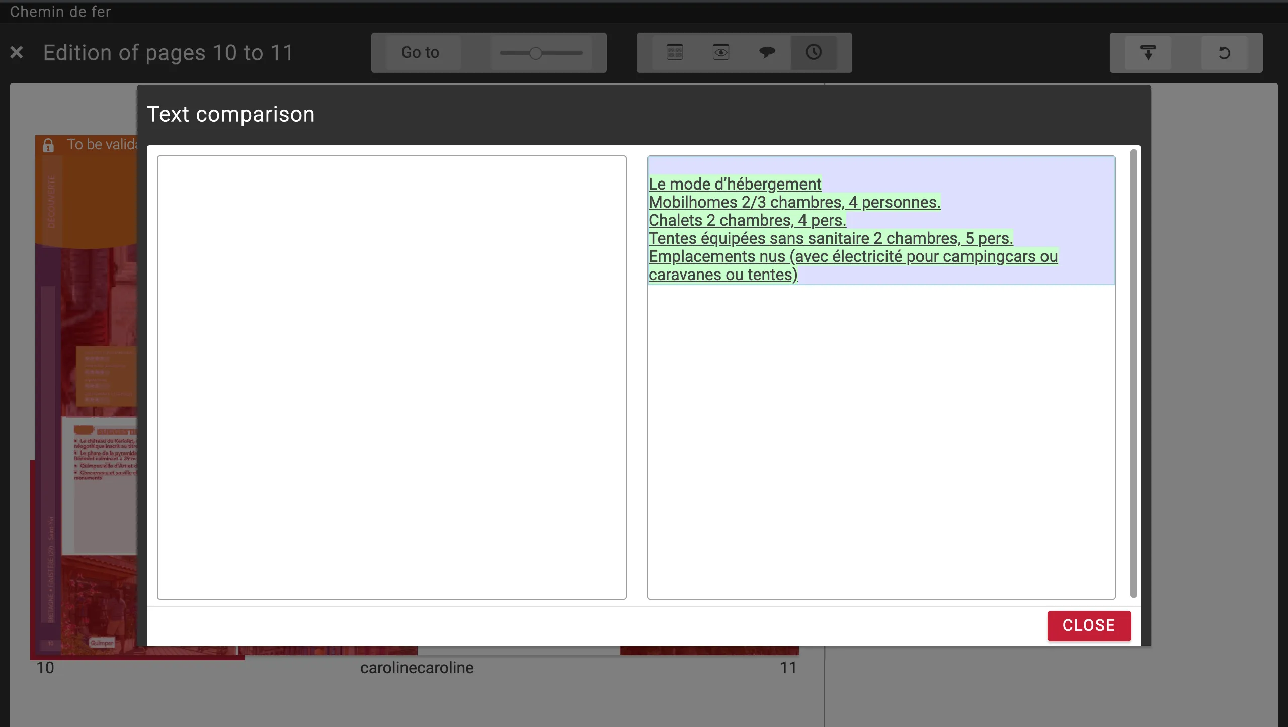 - With the Time Machine tool of the Simple Brief application, access the old versions of the pages of your documents and compare the texts from one version to another to secure your production.